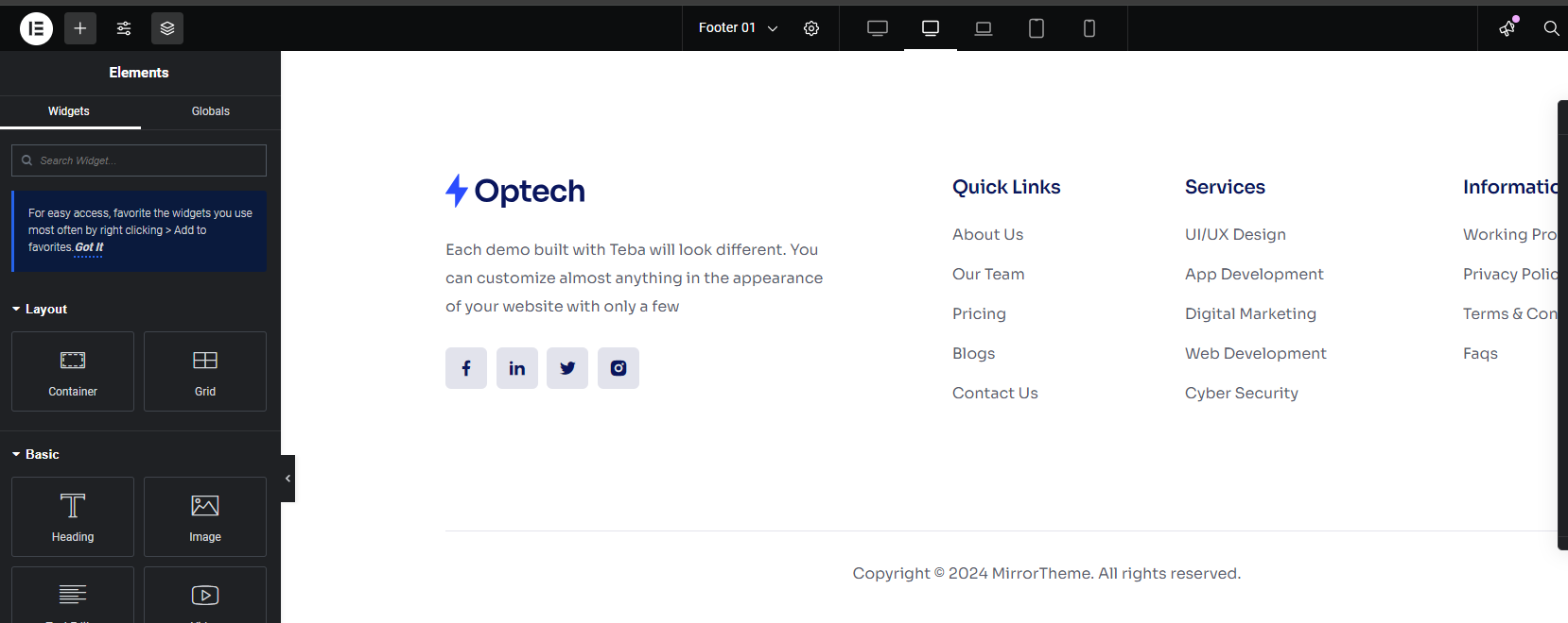 Here you can change the Theme Color, Body Color, Heading Color just one click. For example, when you change the Primary Color the full theme will be changed and when you change the Heading Color the all heading color will be changed.